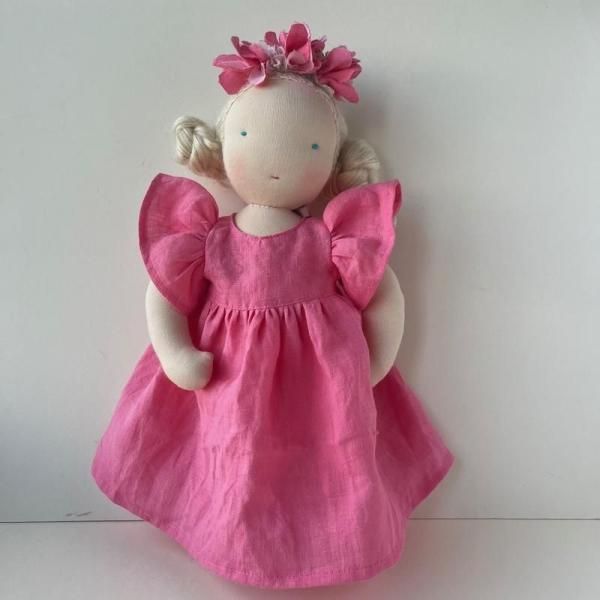 30cm人形用シンプルなワンピース with お花のヘッドアクセサリーです